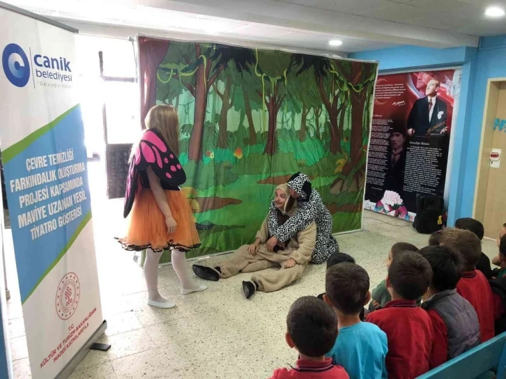 Canik Belediyesi, sosyal sorumluluk projesi kapsamında ilçedeki kırsal mahalle okullarında çevre temizliğini konu alan tiyatro oyunu sahneledi.