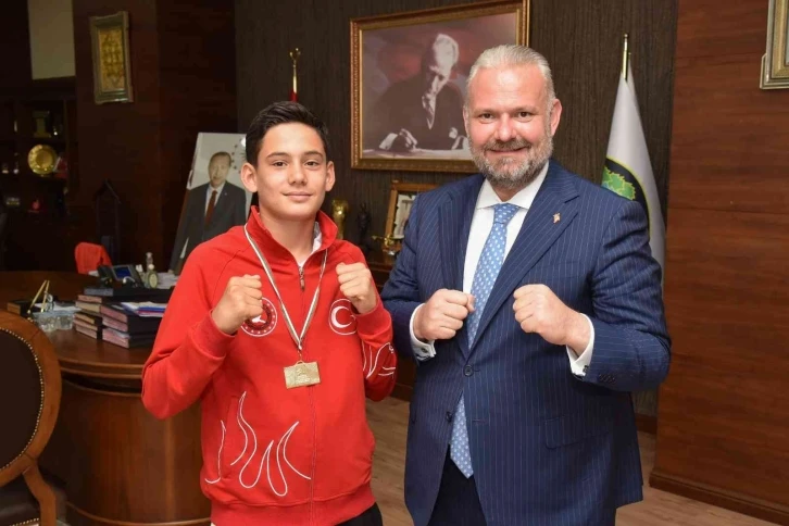 Bulgaristan’da yapılan Avrupa Şampiyonası’nda Wushu Kung Fu dalında altın madalyanın sahibi olan Adar Kalay, Menemen Belediye Başkan Vekili Aydın Pehlivan’a söz verdi. 13 yaşındaki Kalay, Aralık ayında Malezya’da yapılacak şampiyonadan dünya şampiyonu olarak döneceğini söyledi. Kalay’ı tebrik eden Pehlivan, “Kentimize ve ülkemize Avrupa şampiyonu olarak dönmekle bizleri gururlandırdın. Ne mutlu bize. Çok çalışarak Dünya Şampiyonu da olacağından hiç şüphem yok. Menemen Belediyesi olarak her zaman yanındayız” dedi.