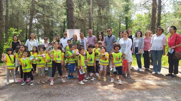 OMÜ Vakıf Koleji Müdürü Seda Semiz ve anasınıfı öğrencileri ile gerçekleştirilen etkinlik sonunda öğrencilerin doğadan topladıkları kozalaklardan yapılan hediyeyi ve teşekkür belgesini ÇEVSAM Müdürü Ardalı’ya verdi.