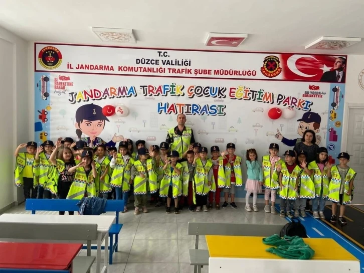 Düzce’de jandarma ekipleri anaokulu, ilkokulu ve ortaokul öğrencilerine uygulamalı trafik eğitimi verdi.