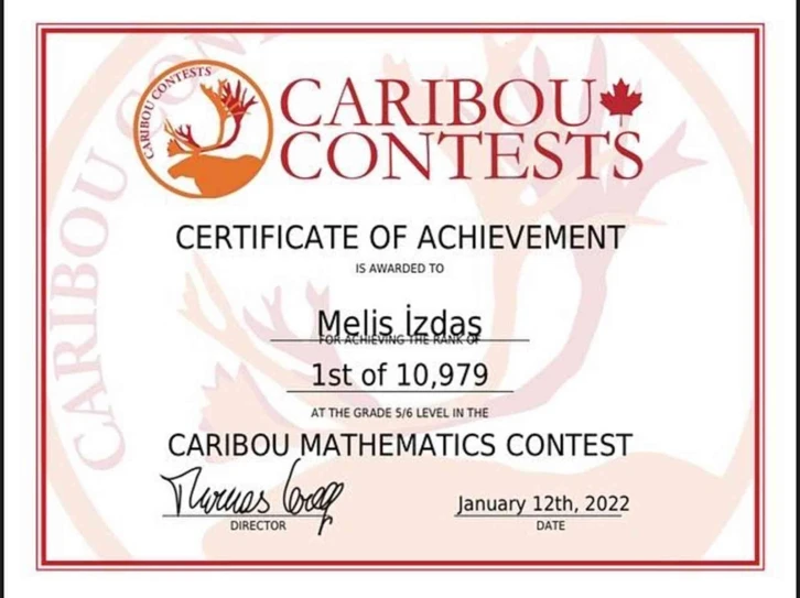 12 Ocak 2022’de düzenlenen matematik yarışmasında, 5-6’ncı sınıf kategorisinde 15 sorunun tamamını doğru ve hızlı cevaplayan Melis İzdaş, 39 ülkeden kendi yaş grubunda 10 bin 979 kişiyi geride bırakarak dünya birinciliği elde etti. Muğla BİLSEM geçen yıl da aynı yarışmada yine 2 dünya birinciliği elde etmişti.