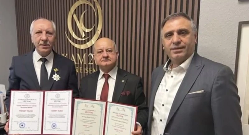 Duisburg’da faaliyet gösteren Kam2000 Reisen’in sahibi ve genel müdürü Hikmet Yazıcı, Azerbaycan’a uzun yıllardır sunduğu destekler ve ülkenin tanıtımına yönelik çalışmaları nedeniyle Azerbaycan Cumhuriyeti Vektör Uluslararası Bilimler Akademisi tarafından “Fahri Azerbaycan Kültür Elçisi” unvanına layık görüldü.