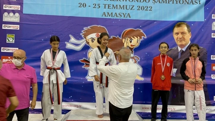 Amasya’da düzenlenen Minikler Tekvando Türkiye Şampiyonası’nda 36 kiloda mücadele eden Amasya Gençlik ve Spor Kulübü sporcusu Azra Sağıroğlu Türkiye şampiyonu oldu. Altın madalyayı antrenörüyle kutlayan 12 yaşındaki şampiyon sevinç gözyaşlarını tutamadı.