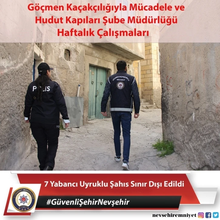 Nevşehir’de göçmen kaçakçılığı ile mücadele çerçevesinde yapılan çalışmalarda toplam 7 yabancı uyruklu şahıs sınır dışı edildi.