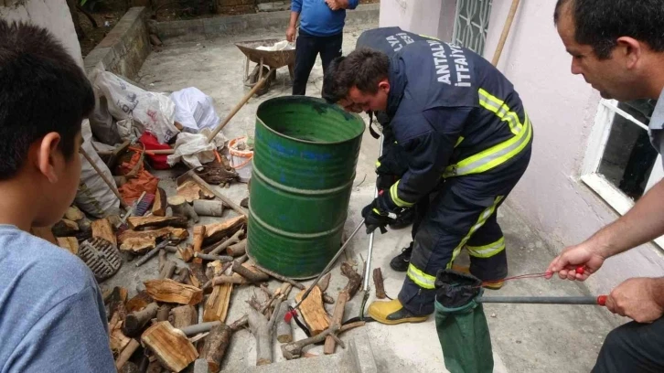 Antalya’nın Manavgat ilçesinde odunluğa kaçan 2 metrelik yılan ekipleri seferber etti. Odunların aktarılmasının ardından yakalanan siyah yılan bu kez de çuvala konulması sırasında itfaiyeciler zor anlar yaşadı.