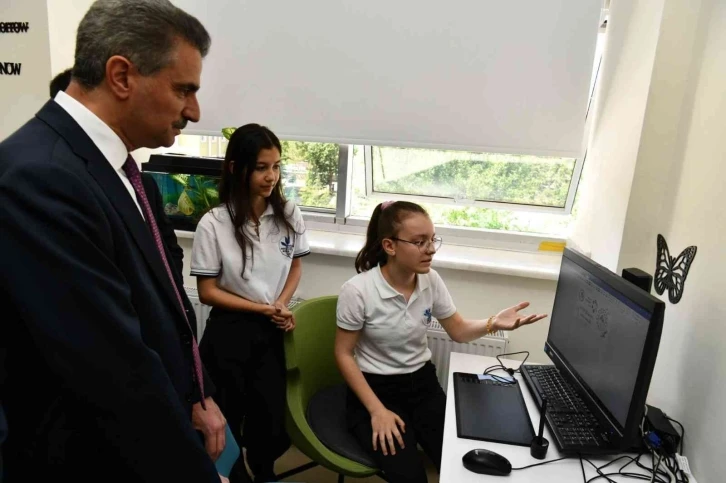 Ardından FCL sınıfındaki bölümleri gezen Vali Baruş öğretmen ve öğrencilerden bilgi alarak projelerinden dolayı öğrencileri tebrik etti.