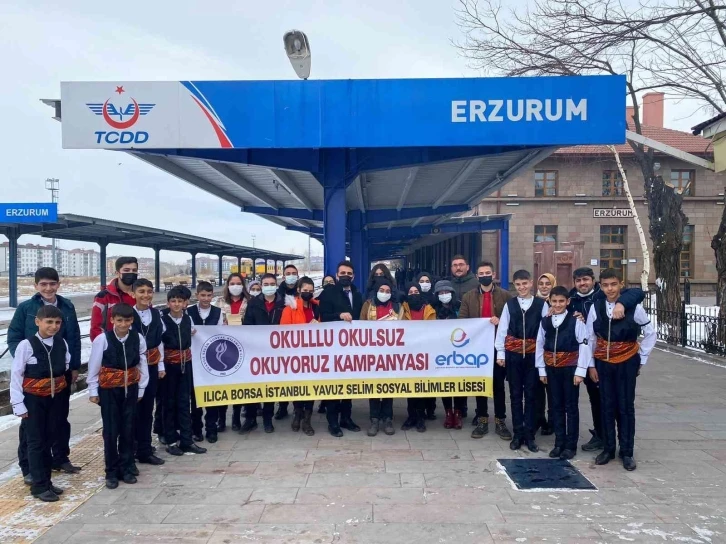 Ilıca Borsa İstanbul Yavuz Selim Sosyal Bilimler Lisesi öğrencileri ‘Okullu Okulsuz Okuyoruz’ projesi kapsamında Erzurum Tren Garında Kars’tan İstanbul’a giden yolculara kitap ve dergiler dağıttı.