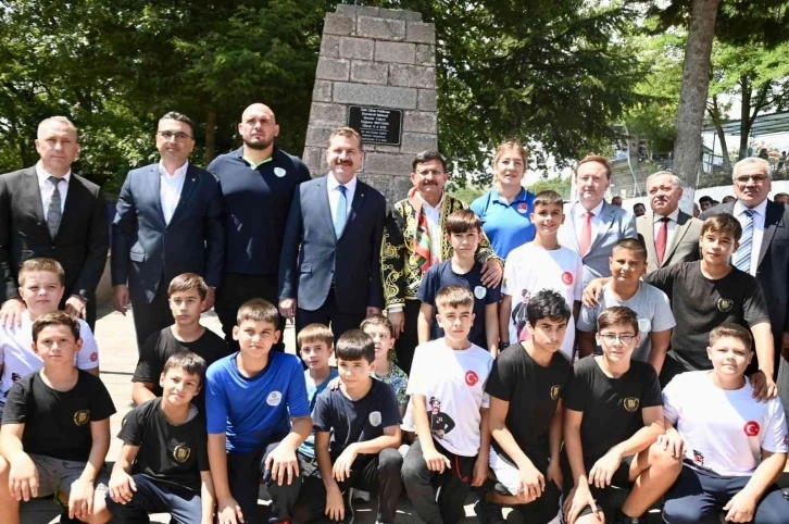 Programda, başpehlivan Ertuğrul Dağdeviren ile kadın güreşinin başarılı ismi Yasemin Adar Yiğit, kol bağlayarak fotoğraf çektirdi.