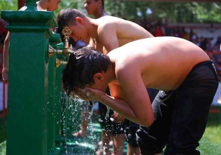 Edirne Sarayiçi Er Meydanı’nda gerçekleştirilen 661. Tarihi Kırkpınar Yağlı Güreşleri’nde pehlivanlar arasında kıyasıya mücadele yaşanıyor. Hava sıcaklığının 30 derecenin üstüne çıktığı kent merkezinde, pehlivanlar rakiplerinin yanı sıra sıcak havayla da mücadele ediyor. Müsabaka öncesi yağlanan pehlivanların hissettiği sıcaklık ise daha da artıyor. Güneşin altında dualı çayırda kıyasıya mücadele sergileyen pehlivanlar, müsabakanın ardından soluğu çeşme altlarında ve gölgelik alanlarda alıyor. Nefes nefese kalan pehlivanlar, çeşmenin altına girerek serinlemeye çalışıyor.
