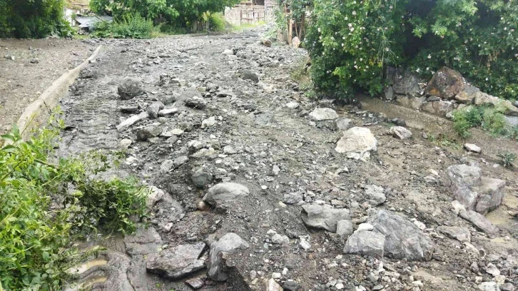 Erzurum’un Oltu ilçesinde etkili olan sağanak yağış nedeniyle bir mahalle yolu ulaşıma kapanırken tarım alanları da zarar gördü.