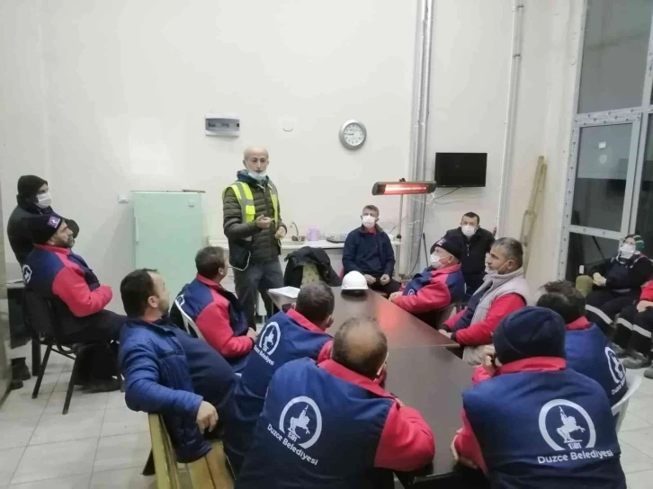 Yıl boyu periyodik aralıklarla çeşitli eğitim çalışmaları yürüten Düzce Belediyesi, saha personellerine yönelik "İş Sağlığı ve Güvenliği Eğitimi" gerçekleştirdi. Bu kapsamda, Park ve Bahçeler Müdürlüğü bünyesinde hizmet veren 73 personel eğitim aldı. Müdürlük personelinin toplanma merkezinde gerçekleştirilen eğitimlerde, İş Güvenliği Uzmanı Hasan Biberoğlu tarafından çalışanlara genel iş güvenliği kuralları anlatıldı. Personelin konu ile ilgili farkındalığını arttırarak, iş sağlığı ve güvenliği kapsamında sorun ve çözümlere dikkat çekildiği eğitimlerde, sıfır kaza prensibi, ekip çalışması, personelin sağlık ve güvenliği gibi konular ele alındı.