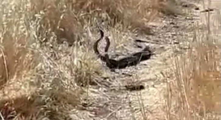 Şanlıurfa’nın Hilvan ilçesinde yaklaşık 2 metre uzunluğundaki iki siyah yılanın dansı cep telefonu kamerasına yansıdı.