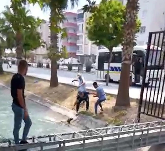 Mersin’in Tarsus ilçesinde kanala düşen köpeği kurtarmak isteyenler gençler girişimlerinde başarısız oldular.