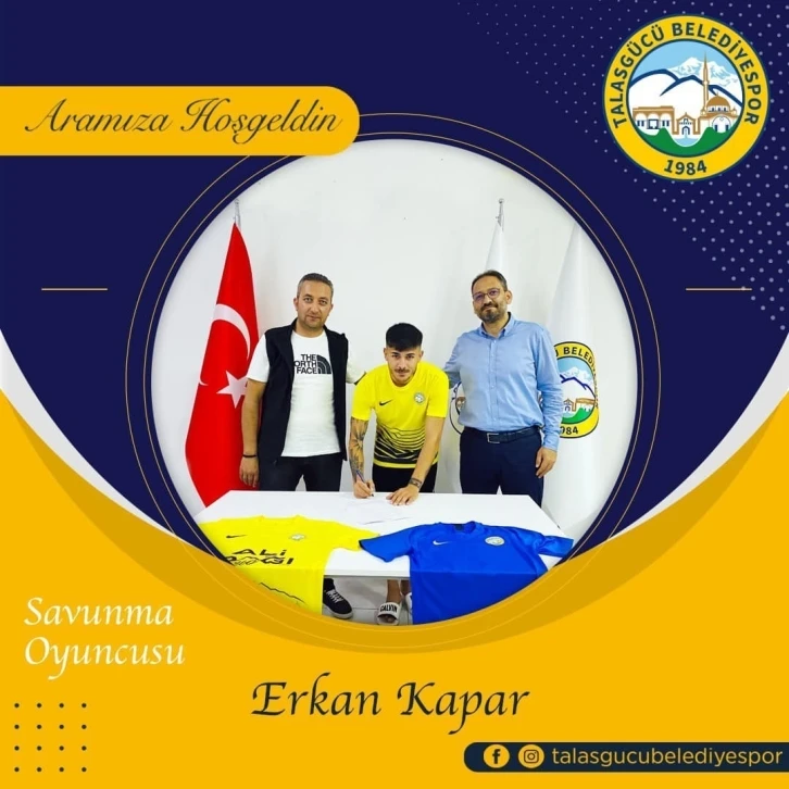 Talasgücü Belediyespor Kulübünden yapılan paylaşımda; “Geçtiğimiz sezon Gaziantep Ankasspor forması giyen Ömer Çoban ve Çankaya FK Erkan Kapar ile anlaşma sağladık. Takımımıza ve oyuncularımıza hayırlı olsun” denildi.