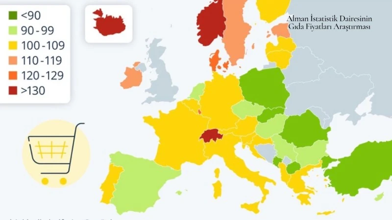 Avrupa karşılaştırmasına dahil edilen ülkeler arasında en ucuz gıda fiyatları Türkiye ve Kuzey Makedonya’da bulunuyor. Bu ülkelerdeki fiyat seviyeleri Almanya’nın yalnızca yüzde 74’ü düzeyinde.