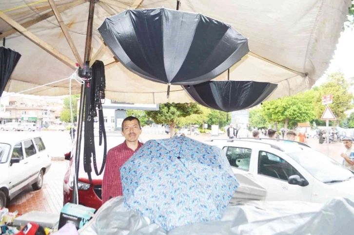 Kütahya’nın Tavşanlı ilçesinde yaklaşık 10 gündür yağan yağmur aralıklar ile devam ederken, yağmurun yağması şemsiyecilerin işine yaradı.