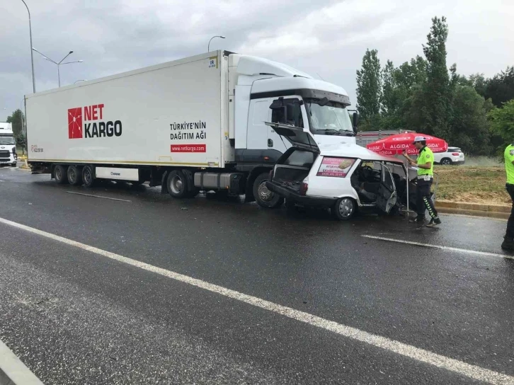Uşak’ta kontrolsüz yola çıkan otomobile tırın çarpması sonucunda meydana gelen trafik kazasında 1 kişi hayatını kaybetti 2 kişi hafif yaralandı.