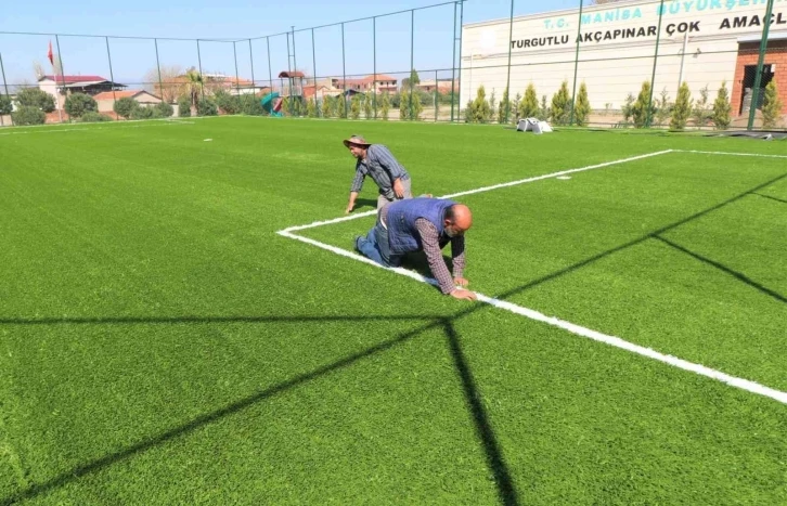 Kent genelinde spor alanlarının artırılması için birçok önemli projeyi hayata geçiren Turgutlu Belediyesi, kırsal mahallelerde yeni spor alanları oluşturmaya devam ediyor. Fen İşleri Müdürlüğü ekipleri, Akçapınar Mahallesinde başlattığı halı saha yenileme çalışmalarında çim zeminli futbol sahası ile birlikte soyunma odası ve diğer bölümler inşa etti. Yakuplar Mahallesinde ise halı saha yapım çalışmalarına başlandı. Halı sahanın yanı sıra soyunma odası ve diğer bölümlerin bulunacağı alan Yakuplar Mahallesine kazandırılmış olacak.