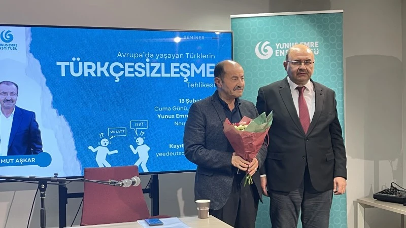 KÖLN – Mahmut Aşkar, Yunus Emre Enstitüsü Köln merkezinde “Türkçesizleşmek” konulu bir konferans verdi. Avrupa’da yaşayan Türklerin dil ve kimlik meselesinin ele alındığı programa ilgi yoğundu.