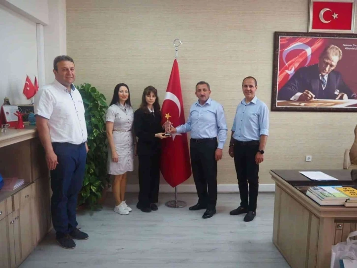 Çorlu İlçe Milli Eğitim Müdürü Hüseyin Erdoğan da Türkiye birincisi Kübra Çakıcı’yı elde ettiği başarıdan ötürü tebrik ederek ödül takdim etti. Kübra Çakıcı’ya ziyaretinde okul müdürü İlker Koşum ile Türk Dili ve Edebiyatı Öğretmeni Sevda Kurtoğlu da eşlik etti.