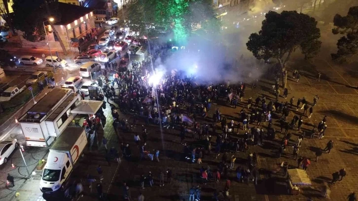 Ordu’nun Ünye ilçesinde binlerce Trabzonspor taraftarı 38 yıl sonra gelen şampiyonluğu horon ve meşalelerle kutladı.