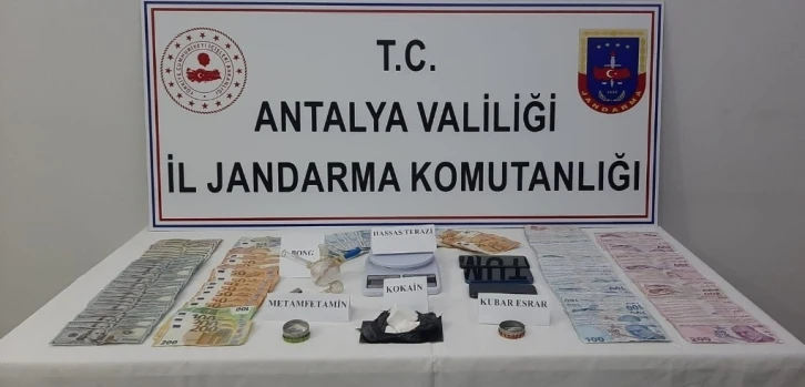 Edinilen bilgiye göre, Manavgat Cumhuriyet Başsavcılığının koordinesinde; ilçede uyuşturucu madde imal ve ticareti yapan şahısların tespiti ve yakalanmasına yönelik çalışma yürütüldü. Yürütülen çalışmalar çerçevesinde, F.H. isimli şahsın kiraladığı araçla İstanbul’dan uyuşturucu madde getirerek ilçedeki turizm bölgesinde piyasaya süreceği tespit edildi. Tespit üzerine Antalya İl Jandarma Komutanlığı İstihbarat Şube Müdürlüğünce, Manavgat İstihbarat Kısım ve Çolaklı Jandarma Karakol Komutanlığı ekipleri ile birlikte Evrenseki Mahallesi’nde bulunan bir rezidansta yapılan aramada; 118 gram kokain, 5 gram kubar esrar, 1 gram metamfetamin, 1 adet hassas terazi, 3 bin 400 dolar, bin 400 euro, 28 bin 850 TL olmak üzere toplam 113 bin 731 TL uyuşturucu madde satışından elde edildiği değerlendirilen para ele geçirildi.