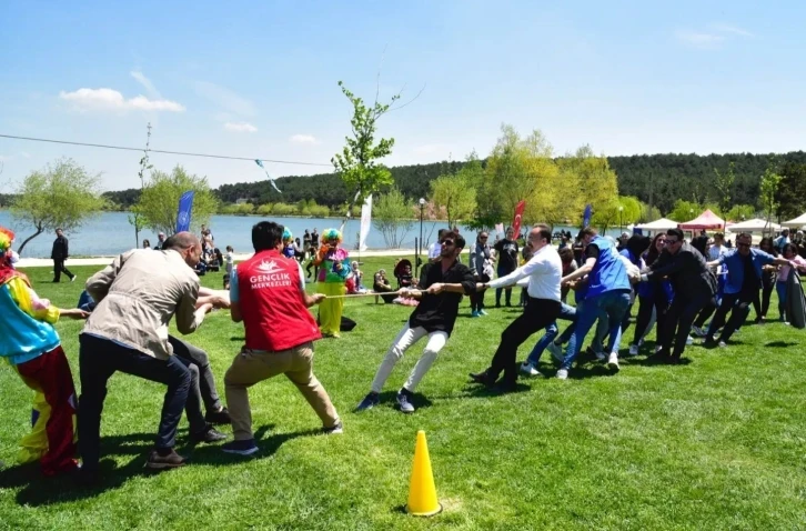 Pelitözü Gölpark’ta düzenlenen etkinlikte keyifli vakit geçiren gençleri ziyaret eden Vali Kızılkaya gençlerin oyunlarına eşlik ederek halat çekti. Halat çekme oyununda ipin bir ucuna Vali Kızıkaya diğer ucuna Bilecik Gençlik ve Spor İl Müdürü geçince ortaya renkli görüntüler çıktı.