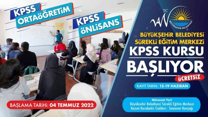 Van Büyükşehir Belediyesi Kamu Personel Seçme Sınavına (KPSS) girecekler için açtığı ücretsiz kurs kayıtları 19 Haziran 2022 Pazar gününe kadar yapılabilecek.