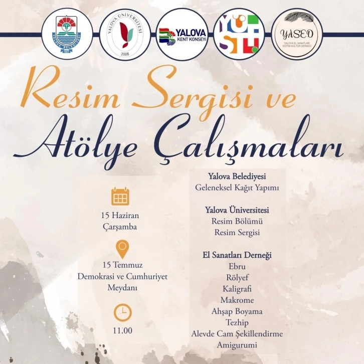 Yalova Belediyesi destekleriyle düzenlenecek olan ‘Resim ve Atölye Çalışmaları’ 15 Temmuz Demokrasi ve Cumhuriyet Meydanında yapılacak.