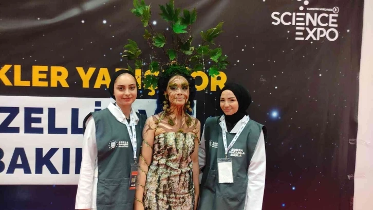 Yıldırım ilçesinde bulunan Faik Çelik Kız Meslek Lisesi Güzellik ve Saç Bakım Alanı Öğrencileri, Bursa Bilim Festivali 9. Science Expo’da hünerlerini sergiledi. 12 sınıf öğrencileri Rüveyda Ulus ve Nazar Kalsın, 2 saatlik uğraşın sonunda sınıf arkadaşları Sinem Aksoy’u çınar ağacına benzetmeyi başardı. Saçlarına yerleşim yeri ve çınar ağacı dalları koyarak Gölyazı köyü ve Ağlayan çınarı arkadaşlarının kafasında birebir canlandırdı. Vücuduna da ağacın köklerini çizdi. Yapılan makyajla çınar ağacına benzeyen öğrenci fuarı gezmeye gelen herkesin dikkatini çekti. Vatandaşlar çınar ağacına benzeyen öğrenciyle bol bol fotoğraf çektirdi.