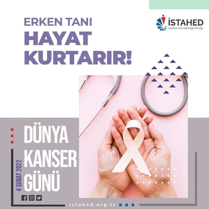 Düzenli yaşam ile kanserden korunmak mümkün. İstanbul Aile Hekimliği Derneği Bilim Komisyonu Üyesi Uzm. Dr. Gülden Uzer Ekin, Dünya Kanser Günü nedeniyle yaptığı açıklamada, “4 Şubat Dünya Kanser Gününde aile hekimleri size faydalı olabilmek için sizin yardım ve farkındalığınıza ihtiyaç duyuyor” dedi.