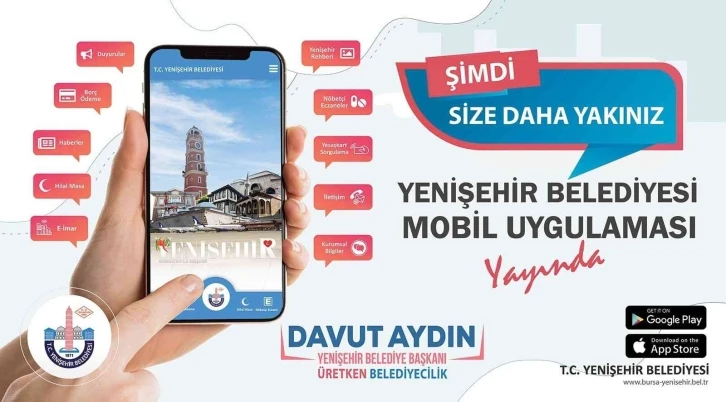 Başkan Davut Aydın Yenişehir Belediyesi’nin tüm birimleri ile entegre bir şekilde çalışan, evrak ve işlem takibine imkân tanıyan, borç sorgulama-vergi ödemelerinde kolaylık sağlayan uygulamanın, tablet bilgisayarlarla cep telefonlarına Google Play ve Apple Store’dan ücretsiz olarak indirilebileceğini söyledi. Başkan Davut Aydın, şunları kaydetti: “Uygulamayı telefonlarına indiren vatandaşımız belediyemizin faaliyet ve projelerine ilişkin haber ve duyuruları ilgili sekmelerden takip edebilecekler. Yine etkinlik takvimi ve kültür haberleri, Osmanlı’nın başşehri Yenişehir’in tarihi hakkında geniş bilgilere ulaşabilecek. Özetle artık Yenişehir vatandaşımıza daha yakın. İlçemize hayırlı olsun.”