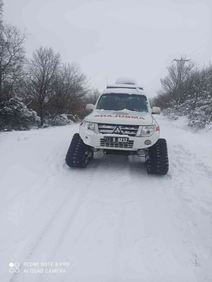Balıkesir’de yoğun kar yağışı nedeniyle kırsal mahallelerde yaşanan sağlık sorunlarına İl Sağlık Müdürlüğü’ne bağlı 112 Acil Sağlık Ekipleri paletli ambulansla çare oluyor.