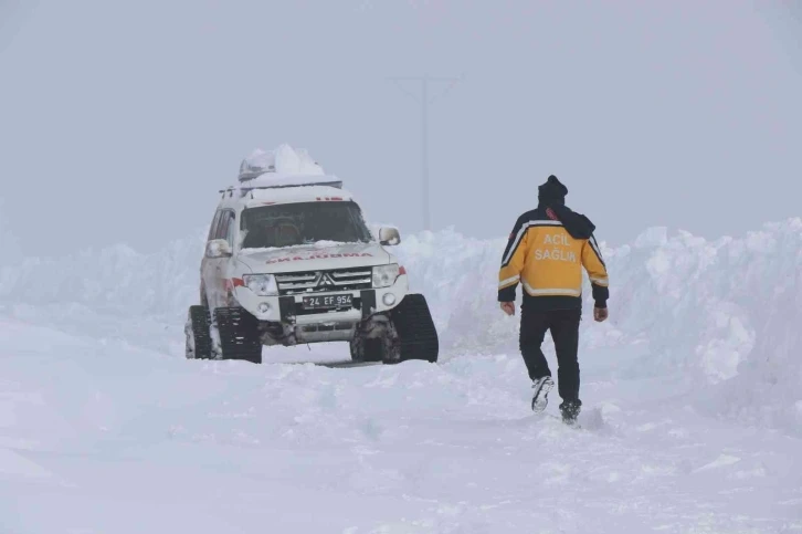 112 Acil Sağlık ekipleri kar, tipi ve dondurucu soğuklara rağmen kırsalda hastaların imdadına yetişiyor.