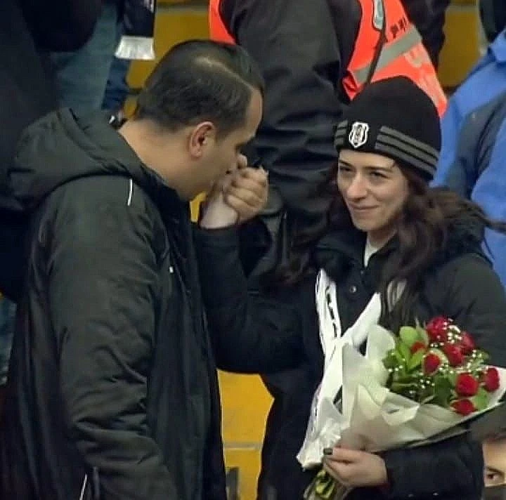 Beşiktaş-Hatayspor karşılaşması öncesinde siyah-beyazlı tribünler, soğuk havada yapılan evlenme teklifiyle ısındı. Siyah-beyazlı kulübün stat güvenliğinden sorumlu isimlerinden İnanç Ramazanoğlu, kız arkadaşı Yağmur Esatoğlu’na yaptığı evlenme teklifiyle tribünlerden alkış aldı. İnanç Ramazanoğlu’nun evlenme teklifi yapacağı sırada stadyum hoparlörlerinden Kayahan’ın ‘Bir aşk hikayesi’ şarkısı çaldı. Kapalı tribünün tam ortasında asılan ‘Siyahıma beyaz olur musun? Benimle evlenir misin?’ pankartı önünde Yağmur Esatoğlu’na evlenme teklifinde bulunan İnanç Ramazanoğlu, aldığı ‘evet’ yanıtının ardından tribünler tarafından uzun süre alkışlandı. Evlenme teklifinin Beşiktaş’ın doğum günü olarak da kutlanan 19.03 (19 Mart) tarihinde olması da dikkatlerden kaçmadı.