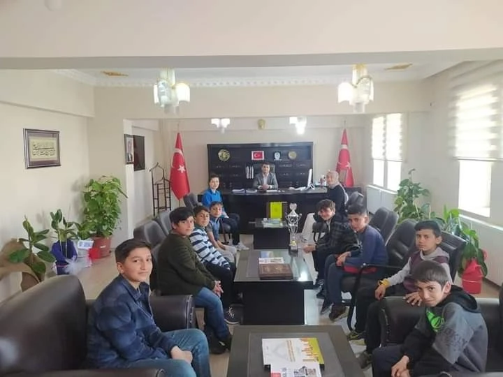 BİTLİS (İHA) – Bitlis il genelinde düzenlenen müsabakalarda 6 dalda 6 kupa alan Güroymak Ortaokul öğrencileri, Kaymakam ve Belediye Başkan Vekili Ramazan Cankaloğlu’nu ziyaret ettiler.