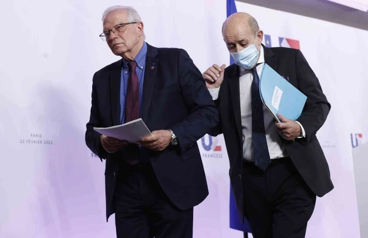 AB Dışişleri Bakanları Fransa’nın başkenti Paris’te olağanüstü Rusya gündemiyle toplandı. Toplantı sonrasında Fransa Dışişleri Bakanı Jean-Yves Le Drian ve AB Dış İlişkiler ve Güvenlik Politikaları Yüksek Temsilcisi ve Avrupa Komisyonu Başkan Yardımcısı Josep Borrell birlikte basın toplantısı düzenledi. AB’nin Rusya’ya karşı yaptırım kararı aldığını açıklayan Le Drian, “27 ülke anlaştı. Rusya tarafından uluslararası hukukun ihlali ve Ukrayna’nın toprak bütünlüğünün ihlali nedeniyle oy birliği ile Rusya’ya karşı ilk yaptırım paketine karar verdik’’ dedi. “Rusya, Ukrayna topraklarına askerlerini soktu”