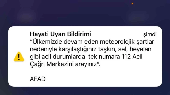 İçişleri Bakanlığı Afet ve Acil Durum Yönetimi Başkanlığı (AFAD) tarafından telefonlara "hayati uyarı bildirimi" gönderildi. Uyarıda, "Ülkemizde devam eden meteorolojik şartlar nedeniyle karşılaştığınız taşkın, sel, heyelan gibi acil durumlarda tek numara 112 Acil Çağrı Merkezi’ni arayınız" denildi.