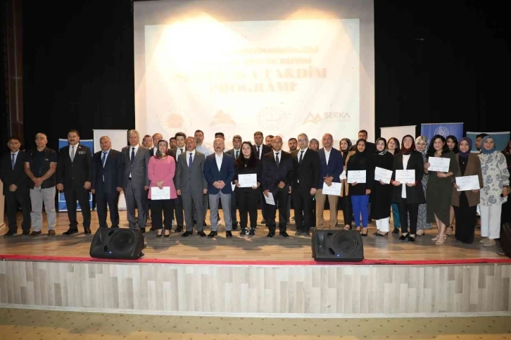 Öğretmenlerin farkındalık düzeyini arttırmak, mesleki ve kişisel gelişimlerine olumlu katkıda bulunarak öğrencilerin akademik başarısını desteklemek amacıyla hayata geçirilen proje çerçevesinde 700 öğretmenin katılımıyla düzenlenen akademik destek eğitimini başarı ile bitiren öğretmenlere düzenlenen programla sertifikaları takdim edildi. Düzenlenen programa Vali Varol’un yanı sıra İbrahim Çeçen Üniversitesi Rektörü Prof. Dr. Abdulhalik Karabulut, Vali Yardımcısı V./Hamur Kaymakamı Kerem Türker, İl Milli Eğitim Müdürü Hasan Kökrek, SERKA İl Koordinatörü Gökhan Özince, akademisyenler ve öğretmenler katıldı.