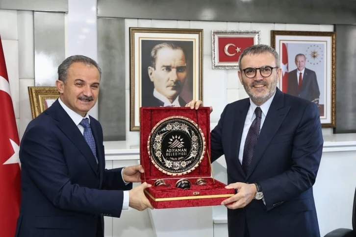 Belediye Başkanı Süleyman Kılınç’ın belediye girişinde karşıladığı Grup Başkanvekili Mahir Ünal ve İl Koordinatörü Ejder Açıkkapı’ya AK Parti Adıyaman Milletvekilleri İbrahim Halil Fırat, Muhammed Fatih Toprak, İl Başkanı Mehmet Dağtekin, Merkez ilçe Başkanı Mustafa Alkayış, Kadın Kolları Başkanı Saliha Diler, Gençlik Kolları Başkanı Mevlüt Kuştepe ile partililer eşlik etti. Başkanlık makamında gerçekleşen ziyarette Başkan Kılınç’tan belediyenin çalışmaları ve projeleri hakkında bilgi alan Grup Başkanvekili Ünal, Adıyaman’da olmaktan duyduğu memnuniyeti dile getirerek, gayretli çalışmalarından dolayı Belediye Başkanı Kılınç’ı tebrik etti.