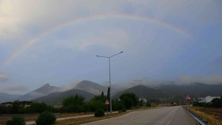 Osmaniye’de etkili olan kuvvetli sağanak yağış sonrası Amanos Dağları üzerinde ortaya çıkan gökkuşağı seyrine doyumsuz görsel şölen sundu.