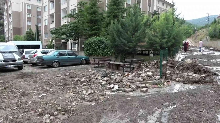 Yağmurun ardından dolu yağdığını sonrasında ise fırtına çıktığına değinen belde sakinlerinden Serap Karahisar, “Hortum gibi bir ses geldi. 10 dakikada sokağı su bastı. Önce su borusu patladı sandık. Sonrasında sokağı sel götürdü” şeklinde konuştu.
