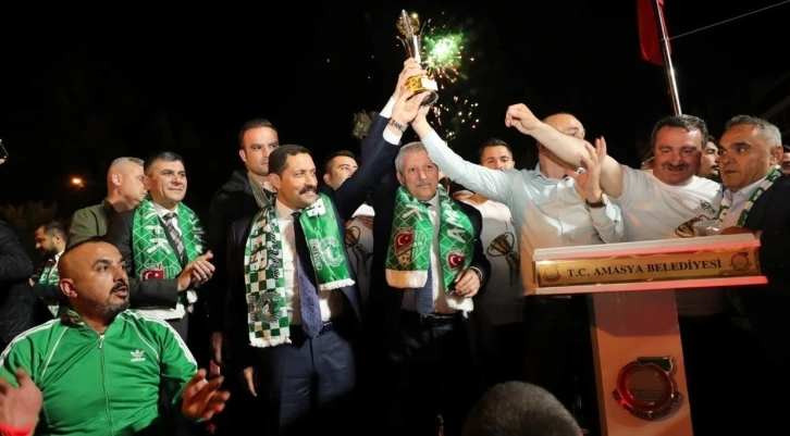 Taraftarların tezahüratlarıyla süren kutlamaya katılan Amasya Valisi Mustafa Masatlı ise, “18 yıllık özlemimizi bugün noktaladık. İnşallah 3. Ligde aynı mücadeleyi azim ve başarıyla devam ettireceğiz” şeklinde konuştu.