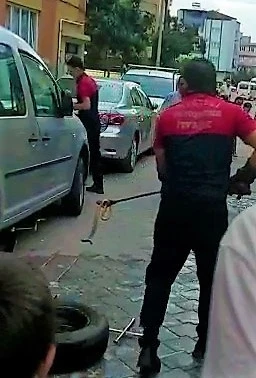Denizli’de park halindeki hafif ticari araca giren yılan, paniğe yol açtı. İtfaiyecilerin aracın tekerini sökerek ulaşabildiği yılan, uzun uğraşlar sonucu gizlendiği yerden çıkartılarak doğaya bırakıldı. Olay, Merkezefendi ilçesi Karaman Mahallesi’nde meydana geldi. Edinilen bilgiye göre; sokak üzerinde park halinde bulunan 20 F 3384 plakalı hafif ticari aracın altına bir yılan girdiğini gören vatandaşlar, durumu itfaiye ekiplerine bildirdi. Olay yerine gelen Denizli Büyükşehir Belediyesi itfaiye ekipleri, aracın alt aksamına gizlenen yılanı çıkarmak için yoğun çaba sarf etti. Araç sahibi ve çevrede toplanan kalabalığın meraklı gözlerle izlediği çalışmalarda, ekiplerin tüm uğraşlarına rağmen yılanın araçtan uzaklaşması sağlamadı. Son çare olarak aracın arka tekerlerinden birisini söken itfaiye ekipleri, özel gereçleriyle yılanı gizlendiği bölgeden çıkarmayı başardı. Kısa süreli paniğe neden olan yılan, doğaya bırakılmak üzere plastik bir bidona konuldu. Yılanın götürülmesi sonrası hem vatandaşlar hem de otomobil sürücüsü derin bir nefes aldı.