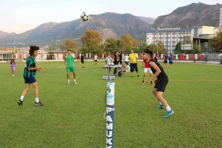 Denizli’de Pamukkale Belediyesi ile Denizli Gençlik ve Spor İl Müdürlüğü tarafından düzenlenen 30 Ağustos Zafer Kupası Ayak Tenisi Turnuvasında 20 takım şampiyonluk için kıyasıya mücadele ediyor. 30 Ağustos Zafer Bayramı ve Türk Silahlı Kuvvetleri Haftası nedeniyle Gençlik ve Spor İl Müdürlüğü ile Pamukkale Belediyesi iş birliğiyle düzenlenen Ayak Tenisi İl Birinciliği müsabakaları Denizlispor Kınıklı Alt Yapı Tesislerinde devam ediyor. 20 takımın katıldığı ve dün yapılan gösteri maçlarıyla başlayan turnuvada, ilk gün grup eleme müsabakaları yapıldı. Çekişmeli geçen müsabakalar sonunda bugün çeyrek, yarı final ve final maçlarına kalan takımlar belli olacak. Bu akşam oynanacak final maçında belli olacak şampiyon, 2-4 Eylül 2022 tarihinde Kütahya Gediz’de düzenlenecek olan Türkiye Şampiyonası’nda Denizli’yi temsil edecek. “İlgi çok yüksek”