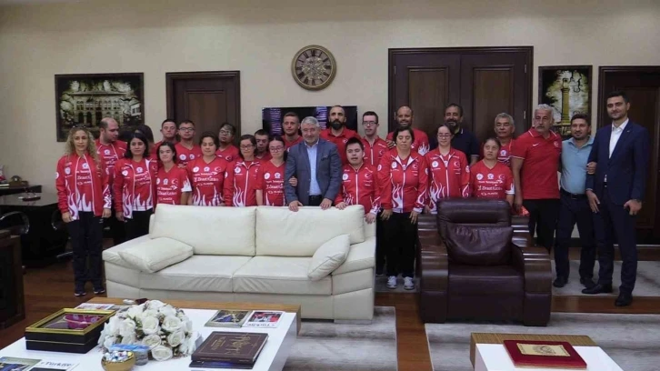 19-26 haziran tarihleri arasında çekya’nın nymburk kentinde yapılacak olan down sendromlular masa tenisi ve atletizm dünya şampiyonasına katılan sporcular, çorum belediye başkanı dr. Halil ibrahim aşgın'ı ziyaret etti