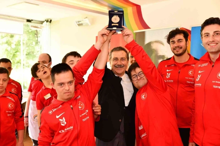Milli kafile Başkan Ataç’a özel bireyler için gerçekleştirdiği çalışmalardan dolayı teşekkür ederek, sporcuların el izlerinin yer aldığı milli takım forması ve "Türkiye Özel Sporcular Spor Federasyonu 20. Yıl Özel Hatıra Madalyası" takdim etti.