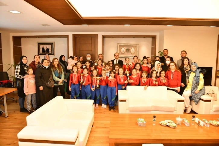 çayırova belediye başkanı bünyamin çiftçi, kocaeli’de düzenlenen okul sporları jimnastik yarışmalarında 6 kupa ve 19 madalya kazanan çesk sporcularıyla bir araya geldi.