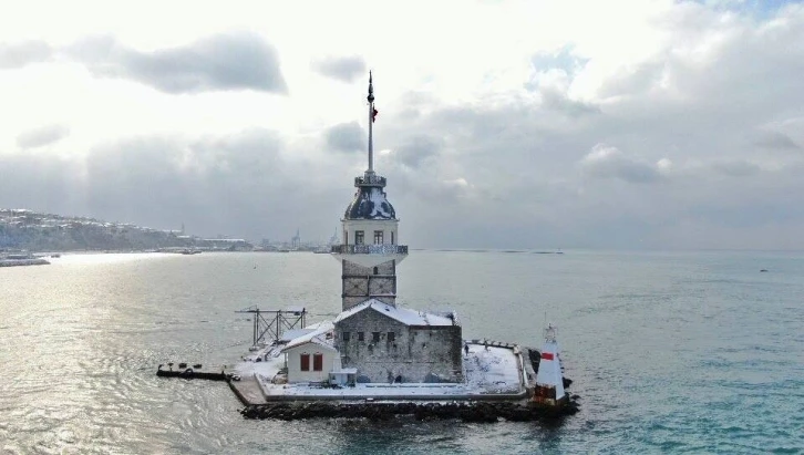 İstanbul’da meydana gelen kar yağışı sonrası Anadolu Yakası’nın birçok kesimi beyaza büründü. İstanbul’un önemli simgelerinden olan Kız Kulesi ise beyaz gelinliğini giyince fotoğrafçıların akınına uğradı. Kız Kulesi’nin masalsı görüntüsü havadan görüntülendi.