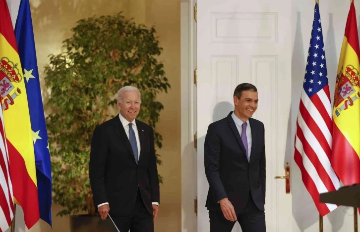 ABD Başkanı Joe Biden, NATO Liderler Zirvesi için geldiği İspanya’nın başkenti Madrid’de İspanya Başbakanı Pedro Sanchez ile bir araya geldi. Liderler ikili görüşmenin ardından ortak basın toplantısı düzenledi. Sachez yaptığı konuşmada, "ABD ve müttefiklerimizle birlikte stratejik ortaklarız. Birçok konuda güçlü tarihi bağlar ve güçlü ortaklıklarla beraber birbirimize bağlıyız. Özgürlük, demokrasi, insan hakları, cinsiyet eşitliği ve hukuk devleti ilkelerini teşvik etme arzularını paylaşıyoruz" dedi. “Değerlerimize yapılan doğrudan saldırı”